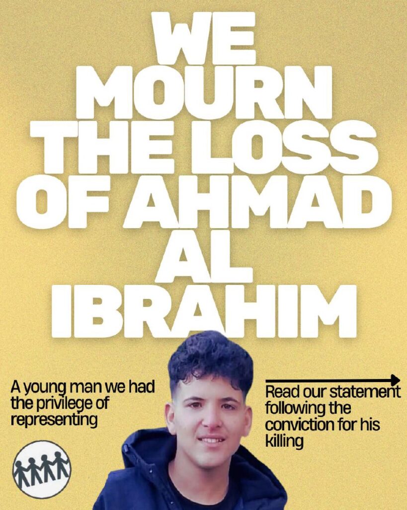 We are devastated by the tragic killing of Ahmad Al Ibrahim, a 16-year-old young person who was under our care and representation at the time of his death.